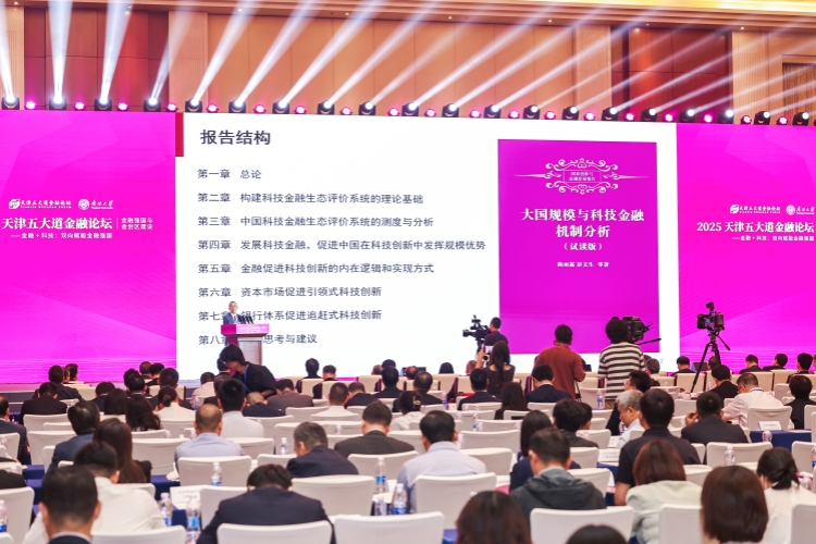 论坛期间,《国家创新与金融发展报告》发布。为推动中国科技金融政策、理论与实践的创新与发展,国家自然科学基金重大项目“科技金融基础理论与实证”南开大学课题组联合中金研究院共同撰写《大国规模与科技金融机制分析》(试读本),并形成《中国科技金融生态报告2025》。南开大学国家创新与金融研究院联席院长、中金研究院院长彭文生对报告作了系统解读。 《大国规模与科技金融机制分析》(试读本)充分结合了经济学、金融学原理与中国经济及金融实践,遵循科技创新与金融发展的基本规律,在构建具有中国特色的科技金融生态评价与分析系统的基础上,主要论述了科技金融促进中国在科技创新中发挥规模优势、金融促进科技创新的内在逻辑和实现方式、资本市场促进引领式科技创新、银行体系促进追赶式科技创新等内容,为构建科学、有效的科技金融体系提供实践指导。 《中国科技金融生态报告2025》分为4个部分、8个章节,分别围绕中国科技金融的发展现状、构建科技金融生态评价系统的理论基础、中国科技金融生态评价系统的测度与分析、规模经济对中国科技创新的作用及金融的基本功能、金融促进科技创新的内在逻辑和实现方式、资本市场促进引领式科技创新的独特优势、银行体系促进科技创新的国际经验与金融工具选择、政策思考与建议等内容,进行了深入阐述与探讨。 当天下午,四场平行分论坛举行。与会专家学者聚焦“中国科技金融生态构建:改革实践与理论创新”“AI赋能金融科技高质量发展”“聚势赋能·创领未来——以基金产业集聚驱动科技金融高质量发展”“数实融合 以融促产——产业金融助力高质量发展”等议题展开深入研讨,凝聚各方智慧,共同做好金融强国这篇大文章。南开大学党委副书记梁琪,南开大学副校长盛斌、方勇纯、白承铭分别参加各平行分论坛。 据悉,天津五大道金融论坛于2024年10月首次举行。论坛上,“南开大学国家创新与金融研究院”揭牌成立。本次论坛沿用“金融强国与金创区建设”主题,旨在聚焦时代命题,进一步发挥论坛的品牌效应,为助力天津高标准建设金融创新运营示范区,打造具有区域竞争力和国际影响力的金融创新高地注入强劲发展动能。 |